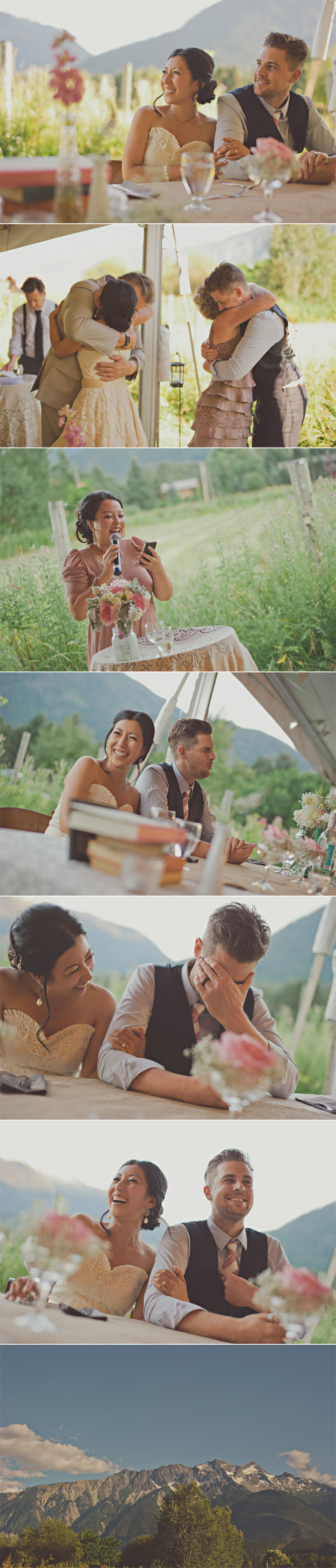 what a day. The day lisa & justin gathered with their fabulous family & friends, at the fantastically gorgeous old vineyard in pemberton, bc. Sometimes i have a hard time finding the words to describe a couple & their wedding day. How many times can i say ‘fabulous’ & ‘fantastic’ & ‘gorgeous’ without it starting to sound, well, silly. But, truth be told, those adjectives describe lisa & justin & their wedding day really, really well. Add in a healthy dose of fun, hot sunshine, amazing mountain views, a wind that whipped up in the late afternoon, beautiful diy details put together perfectly by elizabeth stanley event design (gillian_wallis@hotmail.com), kids & grandparents, the sweetest dog imaginable, heaps of love & happiness & you’ve got a sense of their celebration. There was magic in the air, for sure. A whirlwind of delight.